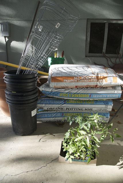 I’ve heard that growing tomatoes is easy, and armed with that information I popped into the local nursery today to get some plants. Picked up a 6-pack of Roma seedings (for sauce) – $1.49, plus slightly larger cherry tomato and early girl plants for $2.49 each. Cheap right? Well, no, I also had to get soil, fertilizer, some buckets (the owner of my place probably doesn’t want me digging up her gorgeous landscaping), and cages. Drove off with $70 worth of tomato materials in my trunk.