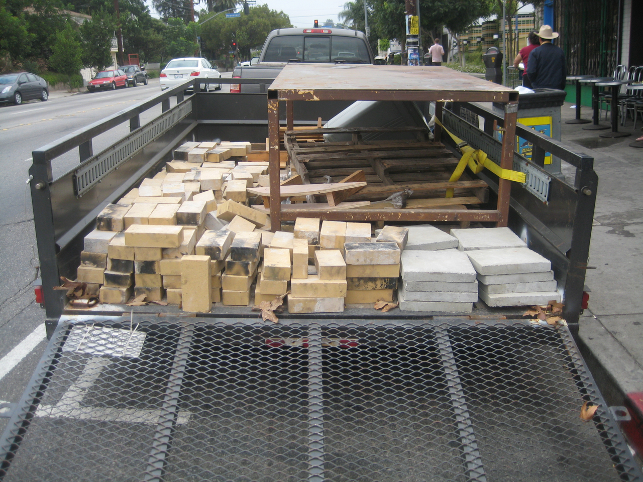 Firebricks, pavers, and a heavy metal table. All the materials needed for our oven.