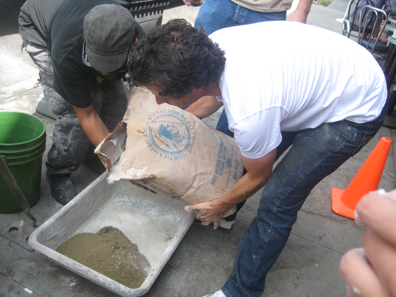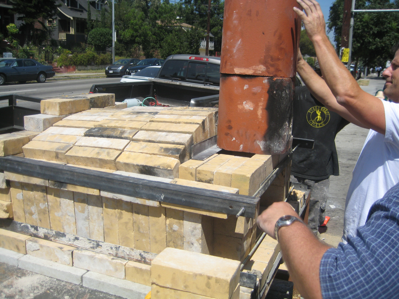I attended a fantastic pizza making event at Machine Project (instructor: Michael O’Malley) that included the construction and firing of a DIY temporary brick pizza oven – the ultimate in pizza cooking. Hugely educational and inspiring, even for a committed pizza fanatic such as myself. The oven, built, fired up, and torn down over the course of an afternoon, worked amazingly well – I cooked the best pizza I’ve ever made, by far.