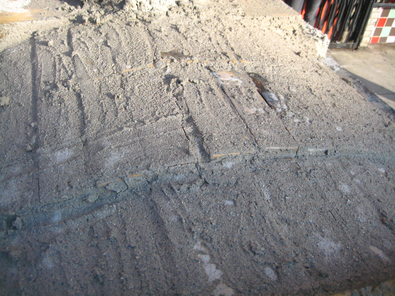 A small shard of broken brick helps maintain the spaces that occur by the curvature of the arch.