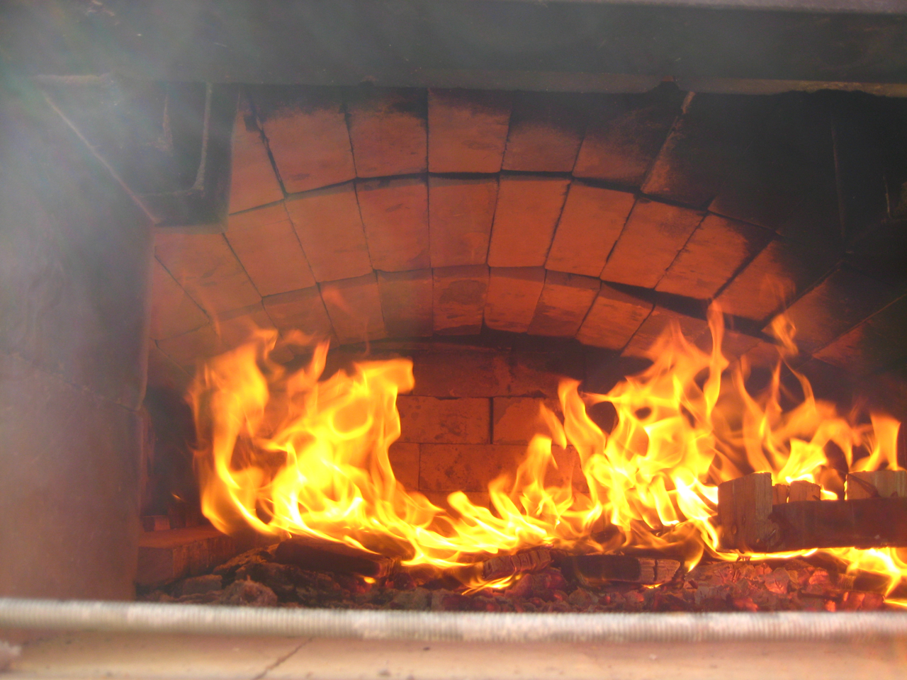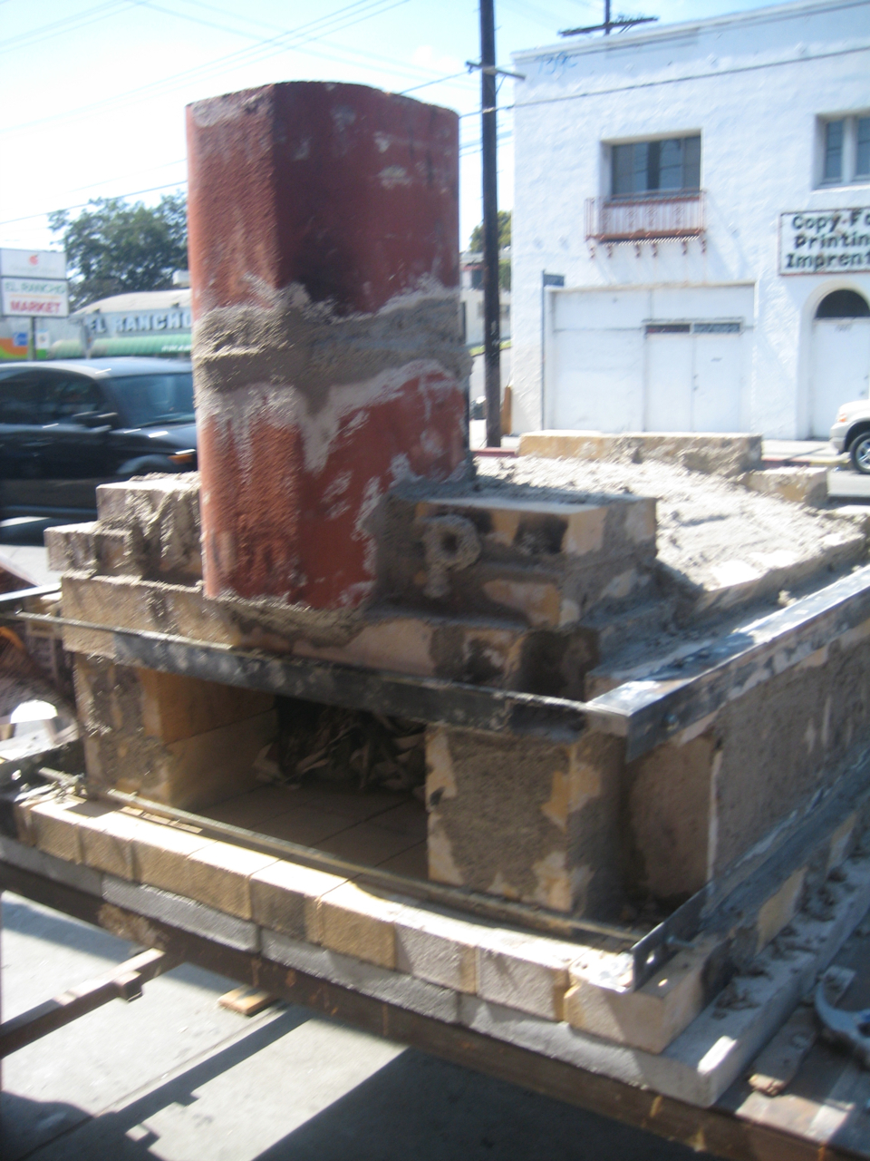 Here is the front of the pizza with the bricked-in chimney and walls.