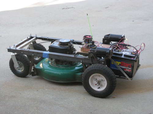 Using the guts from a push-mower, two wheelchair motors and a custom carriage, and some hand-built electronics, Instructables user Johndavid400 has created a radio-controlled lawnmower dubbed the Lawnbot4000. His detailed writeup is available here.