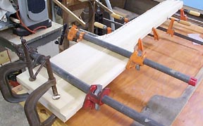 • His plan uses two pieces of 1×6 poplar, planed flat and glued together with biscuits along the handle (a very long handle, at that).