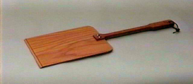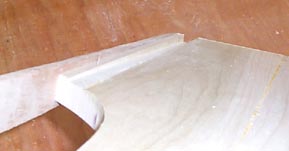 • Once the initial shape is set, the taper is created by screwing two tapered strips of wood on each side of the peel. These strips angle the peel upwards.
