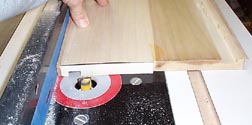 • The whole assembly is then pulled over a bit on the router table, to strip away the unwanted wood and create the rough taper.